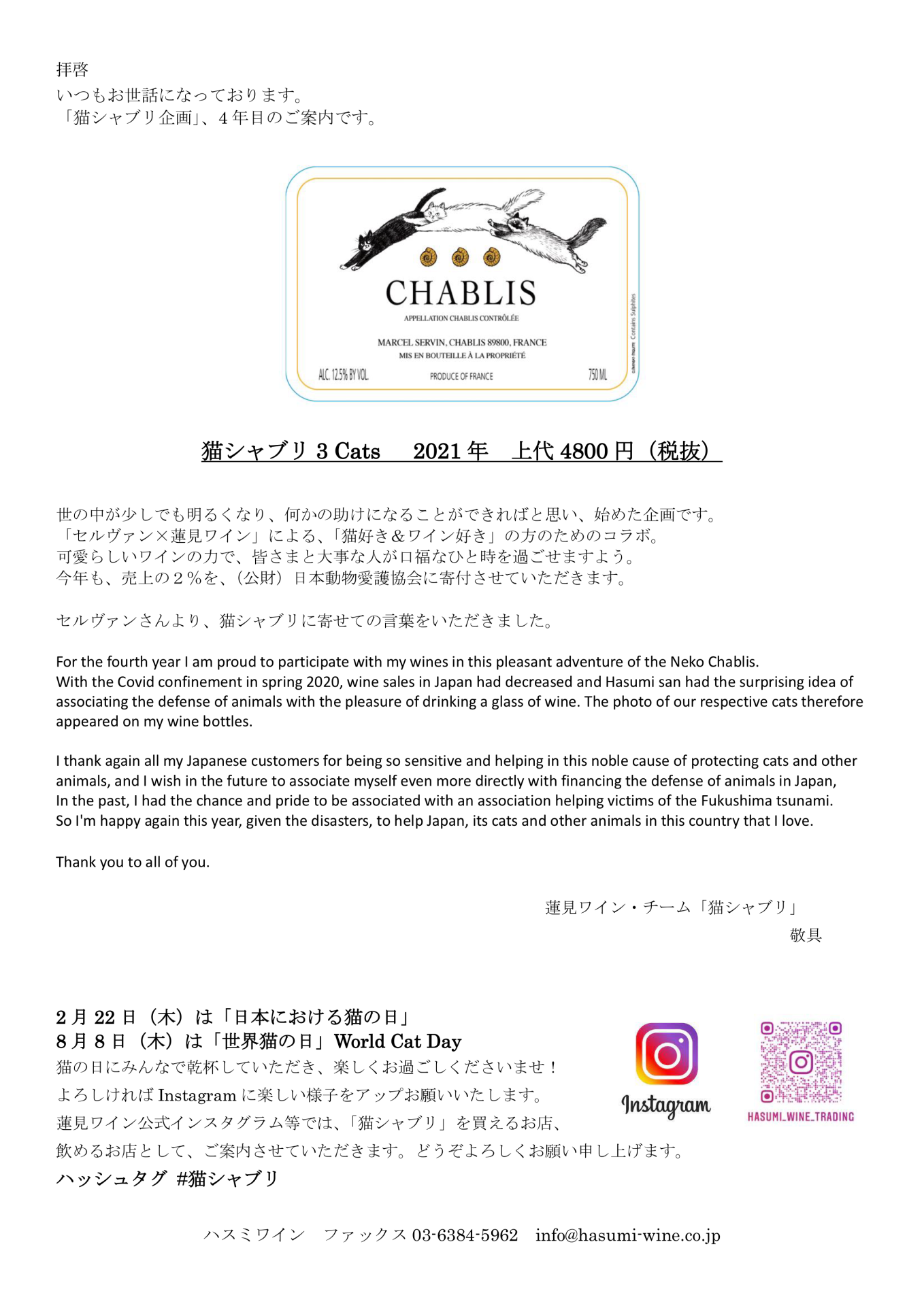 ハスミワイン✖︎Macel Servin猫シャブリ第4回!! 今年も猫シャブリの季節がやってきました。